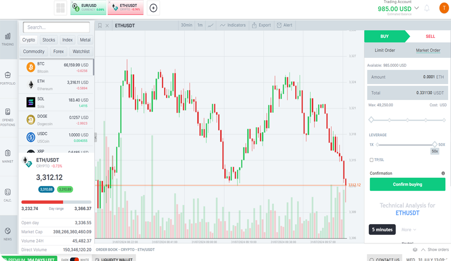 مع CAPITAL SAB يمكنك شراء وبيع أهم العملات الرقمية مثل بيتكوين، إيثريوم، ريبل وكاردانو بسهولة وأمان. يعمل نظام التداول الآلي على مدار الساعة دون توقف، حيث يقوم بتحليل كميات هائلة من البيانات في الوقت الحقيقي، واكتشاف الفرص المربحة وتنفيذ الصفقات بسرعة عالية.